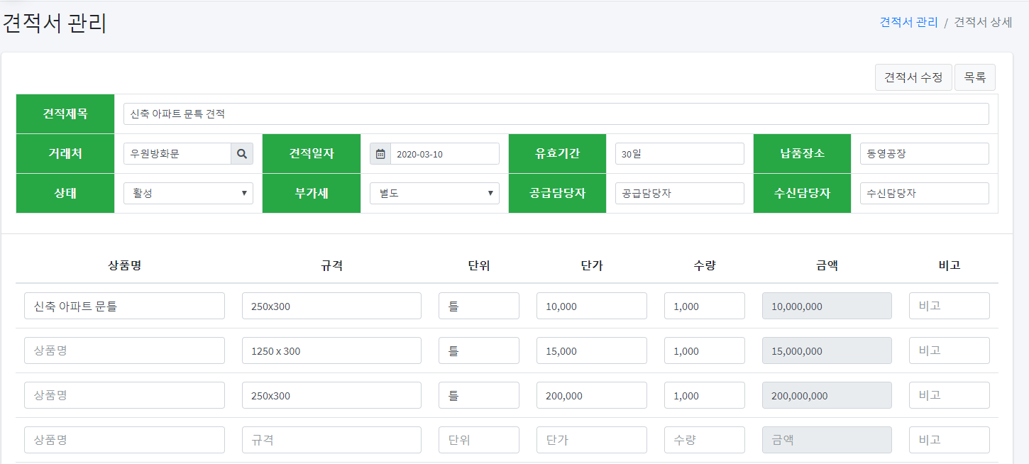 - 견적서 관리 개발 완료